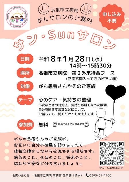 がんサロン『サンSun・サロン』について(1月28日開催)